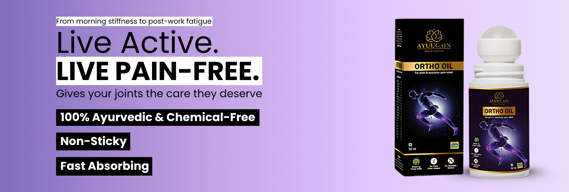 Relieve joint & muscle pain naturally with Ayuugain Ortho Oil & Capsule...